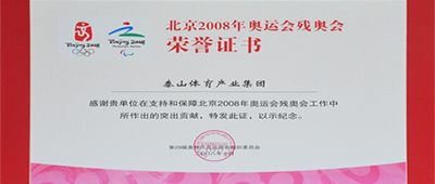 第二十九届奥林匹克运动会组织委员会为金沙js4399集团颁发北京2008年奥运会残奥会荣誉证书